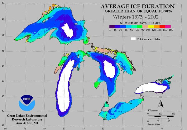 NOAA Map Ice on the Great Lakes