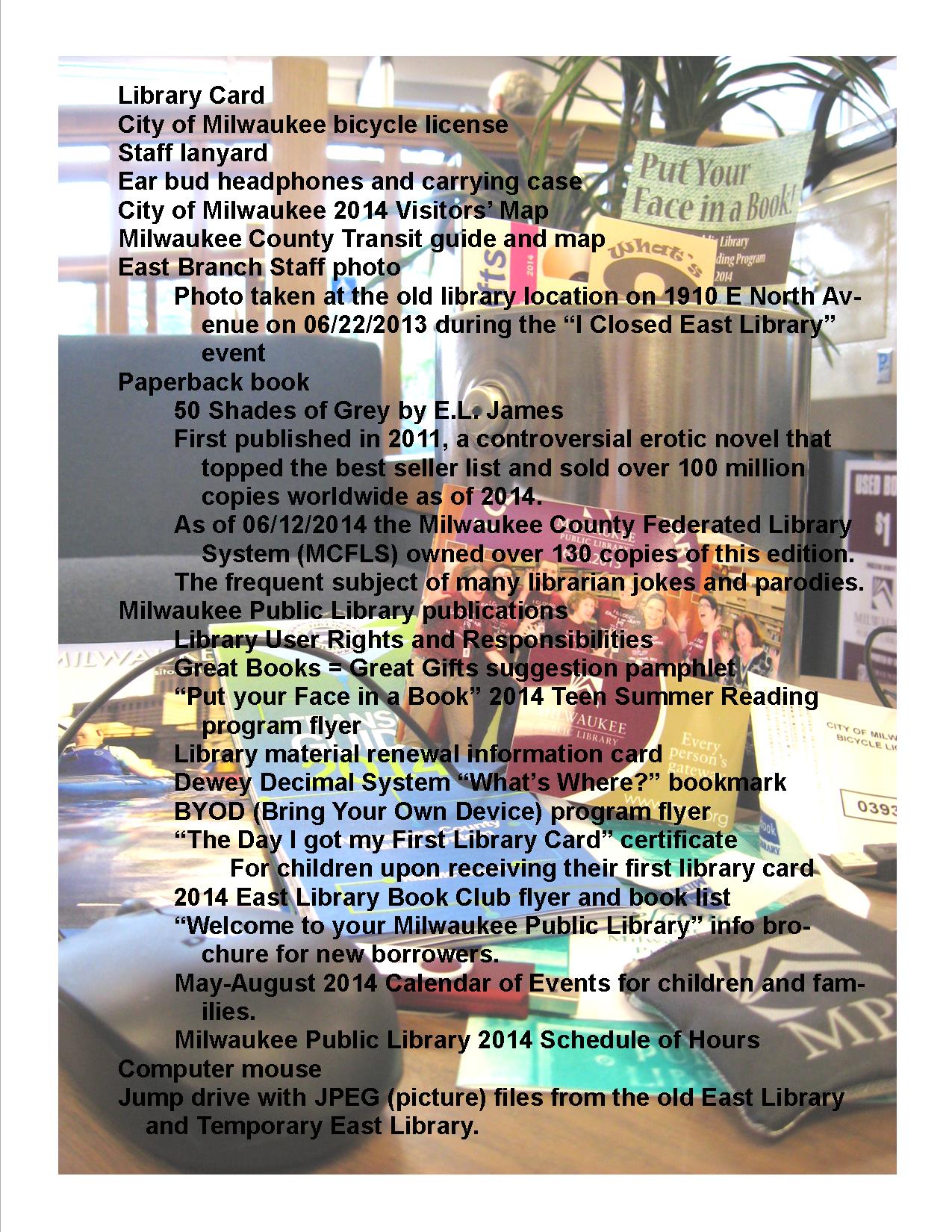 The capsule will live within the walls until a date far in the future when the building is re-purposed or when future citizen's of Milwaukee decide they want a glimpse at library life in 2014.